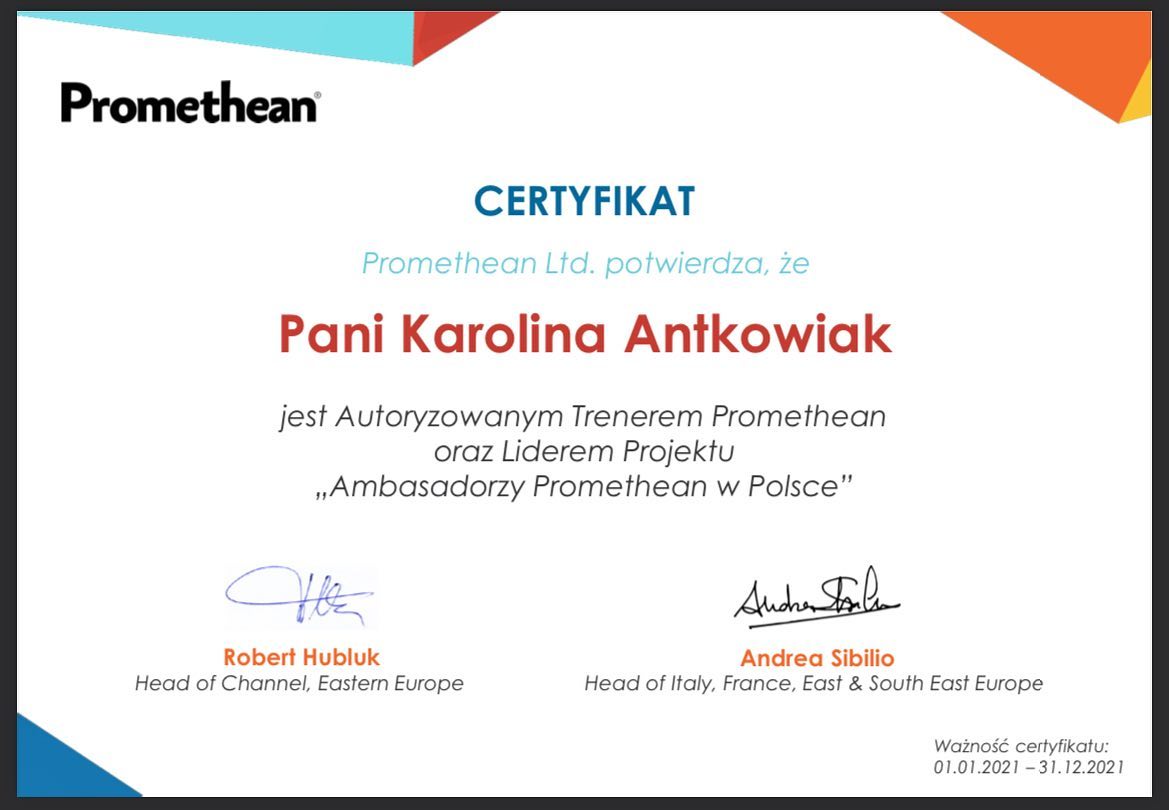 Od trzech lat zajmuje się głównie oprogramowaniem ActiveInspire i jego integracją z innymi narzędziami TiK. Dzięki funduszom unijnym i różnym projektom oraz konkursom przy ogromnym wsparciu dyrektora pomógł wyposażyć szkołę w 5 tablic firmy Promethean. Cały czas wspiera nauczycieli swojej szkoły oraz innych chętnych w obsłudze i wykorzystaniu urządzeń Promethean oraz oprogramowania ActiveInspire. Jako kolejne wyzwanie stawia sobie wprowadzenie do swojego warsztatu pracy a w dalszej kolejności warsztau pracy nauczycieli swojej szkoły platformy ClassFlow.