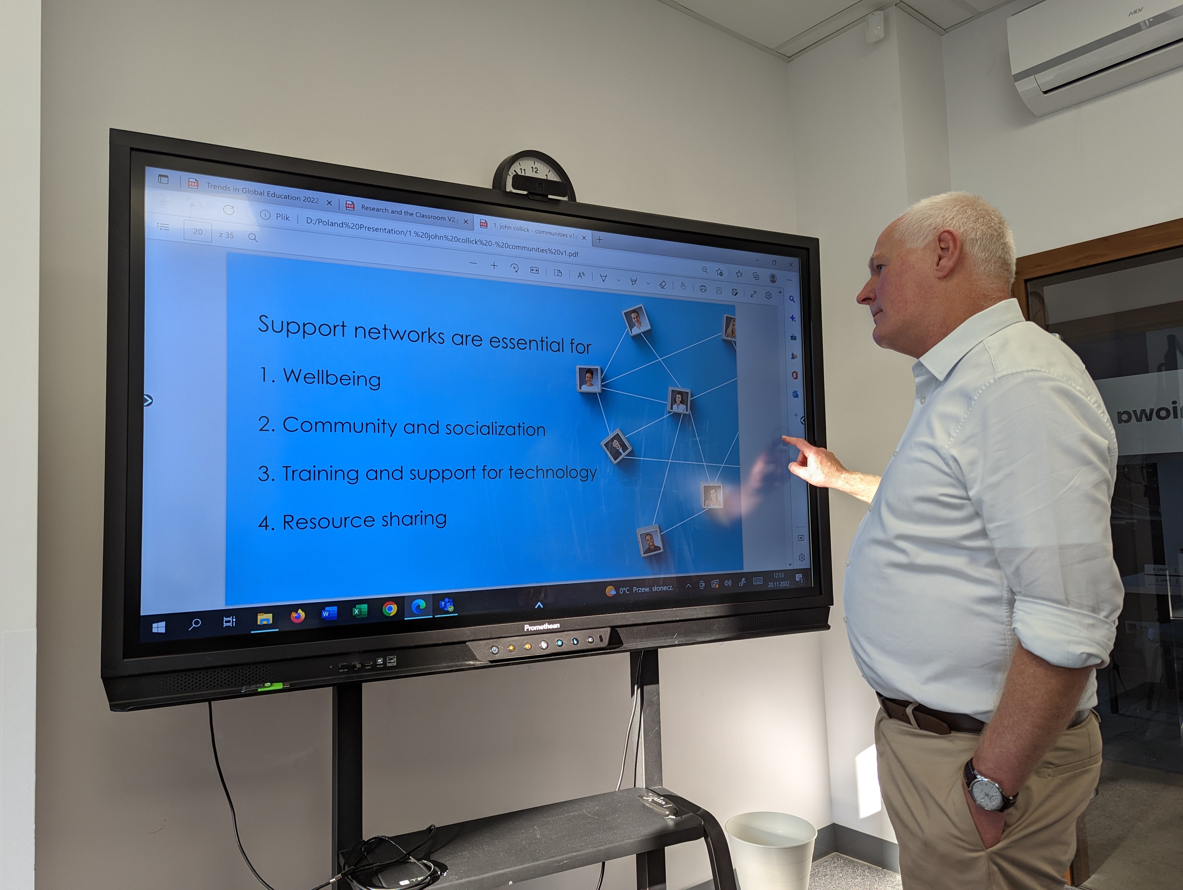 Przy okazji IV już konferencji edukacyjnej „INNOWACJE W EDUKACJI” organizowanej przez KNET SERVICES wraz Kuratorium Oświaty w Rzeszowie odbyło się spotkanie Ambasadorów Promethean w Polsce. Był to przykład nowej strategii zakładającej między organizację spotkań w taki sposób aby towarzyszyły im zawsze dodatkowe aktywności. Tym razem Ambasadorzy mieli pełne ręce roboty. Uczestniczyli w dwóch technicznych szkoleniach pierwsze zdalnie poprowadził Christian Høgh drugie stacjonarnie Paweł Krupiński. Dodatkowo udało się spotkać z dr Johnem Collickiem który przygotował wystąpienie Developments in worldwide education after the pandemic;what’s likely to happen in the near future. Challenges teachers are facing using technology in the classroom. Była również okazja zobaczyć lekcję pokazową Pani Izabeli Siewniak która została nowym Ambasadorem Promethean w Polsce. Udział w samej konferencji był również bardzo znaczący. Ambasadorzy przeprowadzili 7 lekcji otwartych dla zaproszonych uczniów i 2 warsztaty dla nauczycieli.